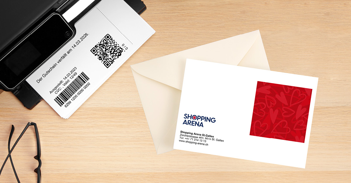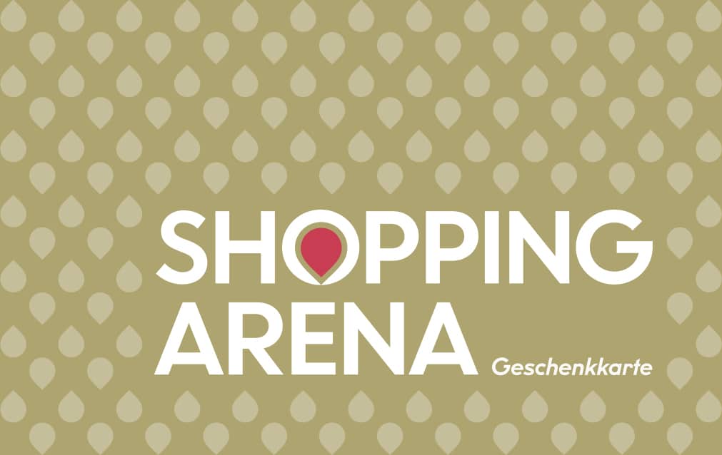 Die Geschenkkarten der Shopping Arena, im handlichen Kreditkartenformat und mit edler Verpackung, sind am Infopoint im Erdgeschoss oder in unserem Onlineshop erhältlich. Die Gutscheine sind in allen Fachgeschäften (exkl. Kiosk), IKEA, Gastronomiebetrieben, in der Fun Arena (Bambolino & Kids Arena) sowie am Infopoint einlösbar.